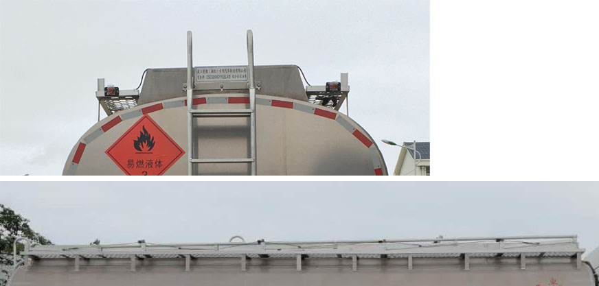 配置  1、該車(chē)適用于危險(xiǎn)品運(yùn)輸,運(yùn)送危險(xiǎn)貨物車(chē)輛類(lèi)型為:FL型,類(lèi)項(xiàng)號(hào):3。罐體有效容積23.3立方米,罐體外形尺寸(mm):6900×2450×1720。僅選用4600+1350mm軸距底盤(pán)。2、側(cè)防護(hù)材料為鋁合金,螺栓連接;后防護(hù)材料為Q235,螺栓連接,截面尺寸80×140mm,下邊緣離地高500mm。3、選裝駕駛室前面罩,選裝AEBS攝像頭和雷達(dá)面罩。僅選用排氣管前置、限速裝置(限速80km/h)、前輪盤(pán)式制動(dòng)及子午線輪胎的底盤(pán),轉(zhuǎn)向輪安裝輪胎爆胎應(yīng)急防護(hù)裝置,后軸采用空氣懸架。安裝帶有衛(wèi)星定位功能的行駛記錄儀。EBS型號(hào)/生產(chǎn)廠家:EBS5/東科克諾爾商用車(chē)制動(dòng)系統(tǒng)(十堰)有限公司。發(fā)動(dòng)機(jī)/油耗值(L/100km)對(duì)應(yīng)關(guān)系為:DDi75E300-60/37.3。4、選裝ETC。罐體上部選裝上走道。