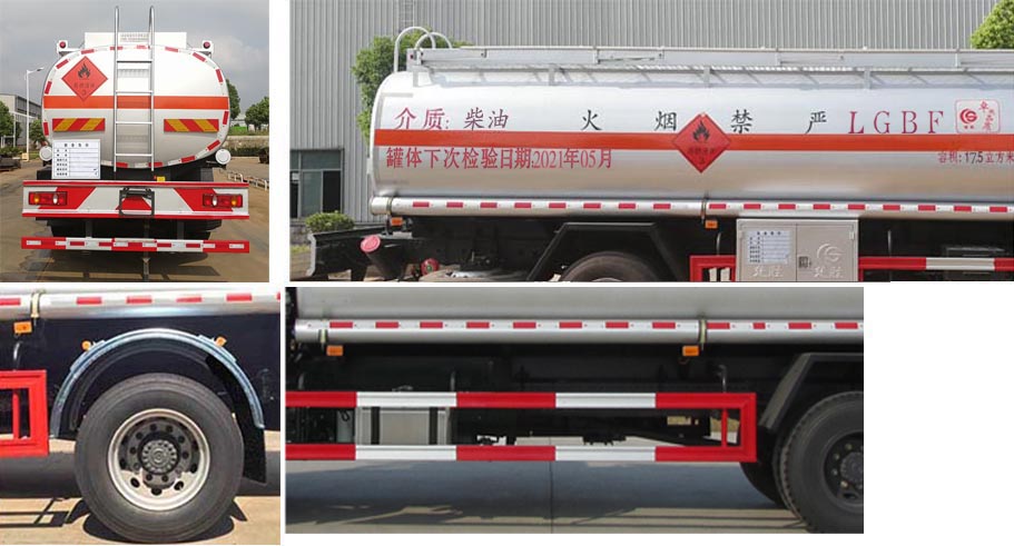 配置  1、該車適用于危險品運輸,運送危險貨物車輛類型為:FL型,類項號:3。罐體有效容積:14.9立方米,運輸介質:汽油,密度:700千克/立方米,罐體外形尺寸(長×寬×高)(mm):5700×2200×1450。罐體上部選裝上走道;選裝后部尾燈架樣式;選裝弧形擋泥板。選裝左側無工具箱。2、側,后防護材料均為Q235,螺栓連接;后防護截面尺寸120×60mm,下邊緣離地高500mm。3、僅采用軸距(mm):4700。后軸采用空氣懸架。隨底盤選裝駕駛室前面罩,選裝側窗玻璃;駕駛室頂部中間三個裝飾燈為選裝件;前霧燈為選裝件;駕駛室前臉擾流罩為選裝件。僅選用排氣管前置、限速裝置(限速80km/h)、前輪盤式制動及子午線輪胎的底盤;安裝帶有衛星定位功能的行駛記錄儀;ABS型號/生產廠家:3631010-C2000/東科克諾爾商用車制動系統(十堰)有限公司。發動機B6.2NS6B210油耗值為26.5 L/100Km。 該車后軸為采用空氣懸架.