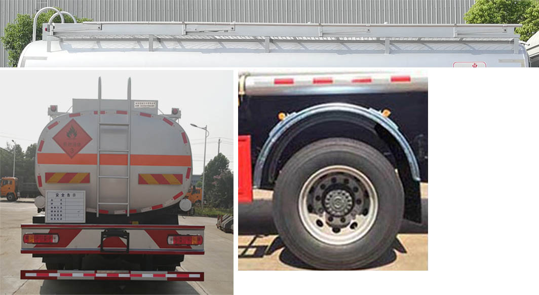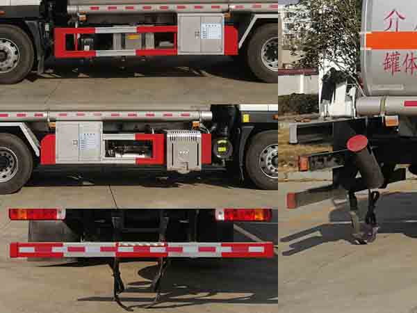 配置  1、該車適用于危險品運輸,運送危險貨物車輛類型為:FL型,類項號:3。罐體有效容積:14.3立方米,運輸介質:汽油,密度:700千克/立方米,罐體外形尺寸(長×寬×高)(mm):5700×2150×1480。2、側、后防護材料均為Q235,螺栓連接。后防護截面尺寸120×60mm,下邊緣離地高500mm。罐體上部選裝上走道;選裝后部尾燈架樣式;選裝弧形擋泥板。3、僅采用4700mm的軸距。僅選用排氣管前置、限速裝置(限速80km/h)、前輪盤式制動及子午線輪胎的底盤;安裝帶有衛星定位功能的行駛記錄儀;ABS系統型號/生產企業對應關系:ABS-E/威伯科汽車**系統(**)有限公司;ABS/ASR-24V-4S/4M/東科克諾爾商用車制動系統(十堰)有限公司;CM4XL-4S/4M/廣州瑞立科密汽車電子股份有限公司;3550D-1010/東科克諾爾商用車制動系統(十堰)有限公司.采用的發動機與油耗值(L/100Km)對應關系為:F4.5NS6B220/24.4,B6.2NS6B210/26。該車轉向輪安裝輪胎爆胎應急防護裝置,后軸采用空氣懸架。