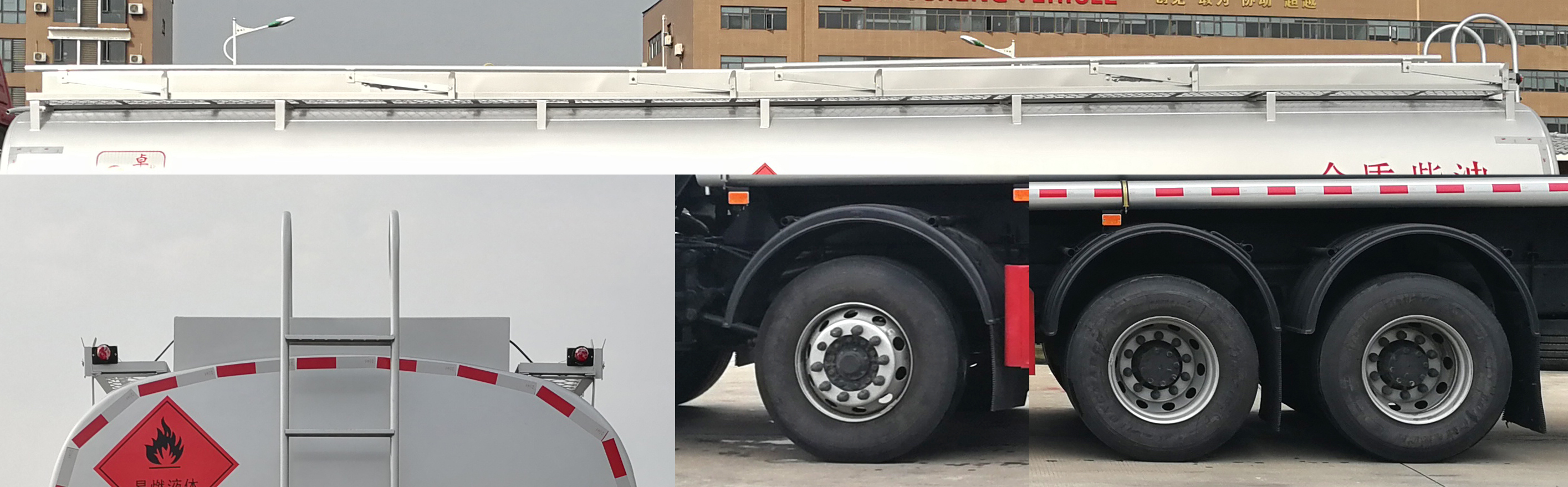| 配置 | 該車為危險(xiǎn)貨物運(yùn)輸車,運(yùn)送危險(xiǎn)貨物車輛類型為:FL型,類項(xiàng)號(hào):3。運(yùn)輸介質(zhì):汽油,罐體有效容積27.5立方米,罐體外形尺寸(長(zhǎng)×寬×高)(mm):8900×2300×1660。僅選用軸距(mm):1800+4575+1400。側(cè)、后防護(hù)材料均為Q235,螺栓連接,后防護(hù)截面尺寸(mm)80×140,下邊緣離地高460mm。隨底盤選裝駕駛室。僅選用排氣管前置、限速裝置(限速80km/h)、前輪盤式制動(dòng)及子午線輪胎的底盤。轉(zhuǎn)向輪安裝輪胎爆胎應(yīng)急防護(hù)裝置。后軸采用空氣懸架。安裝帶有衛(wèi)星定位功能的行駛記錄儀。EBS**系統(tǒng)型號(hào)/生產(chǎn)廠家:EBS3/威伯科(上海)管理有限公司。發(fā)動(dòng)機(jī)/油耗值(L/100km)對(duì)應(yīng)關(guān)系為:MC07.31-60/38.0,MC07.34-60/38.0,MC09.35-60/38.2,MC09.38-60/38.2,MC09.35B-60/38.2,MC07.33-60/38.0,MC07H.33-60/37.44,MC07H.35-60/37.44,MC11.40-60/37.3,MC11.44-60/37.3,MC11.40-61/37.3,MC11.43-61/37.3,WP8.350E61/38.04。選裝ETC。罐體上部選裝上走道,**軸及驅(qū)動(dòng)軸選裝弧形擋泥板。 | ||