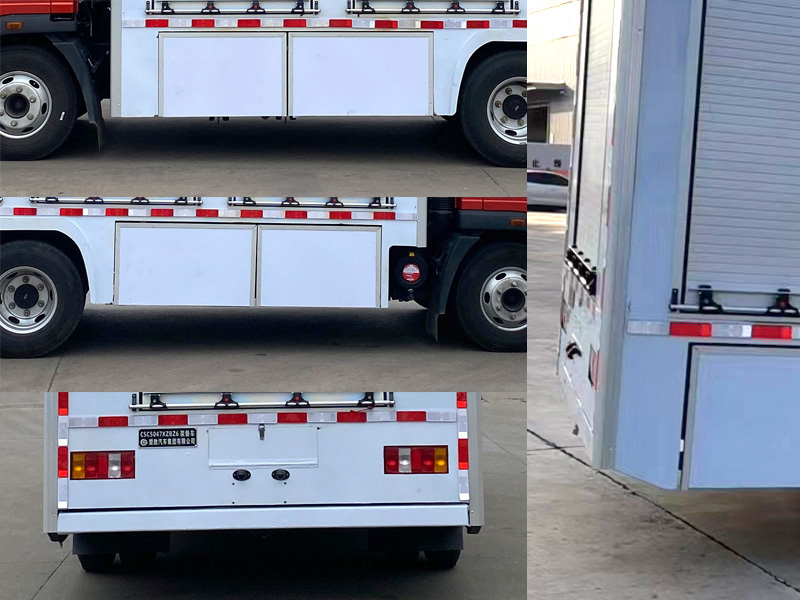 | 其它: | 廂體頂部封閉,不可開啟。該車配備專用裝備架等專用設備, 主要用于裝載警用裝備及勘查、搶險救援裝備的專用車輛。側防護由車身結構代替,后防護材料為Q235,焊接,后防護截面尺寸(mm)100×50,下邊緣離地高450mm。隨底盤選裝駕駛室,選裝鋁合金輪輞。ABS型號/生產企業:XH-KQ4S4M-E01/廣州市西合汽車電子裝備有限公司,CM4XL-4S/4M/廣州瑞立科密汽車電子股份有限公司,VIE ABS-Ⅱ/浙江萬安科技股份有限公司。發動機與油耗值對應關系為(L/100km):WP2.3NQ130E61/10.18,D25TCIF1/11.06,WP2.5NQ160E61/10.11,WP2.5NQ150E61/10.11。選裝ETC。僅采用軸距3280mm。整備質量包含冷卻液、潤滑劑、反光背心、三角警告牌、備胎、停車楔、隨車工具、專用裝備。貨廂重量(kg):2160;材質/厚度:底板,碳鋼/2mm;側板,內板鋁板/1.2mm,外板碳鋼/2mm。 |