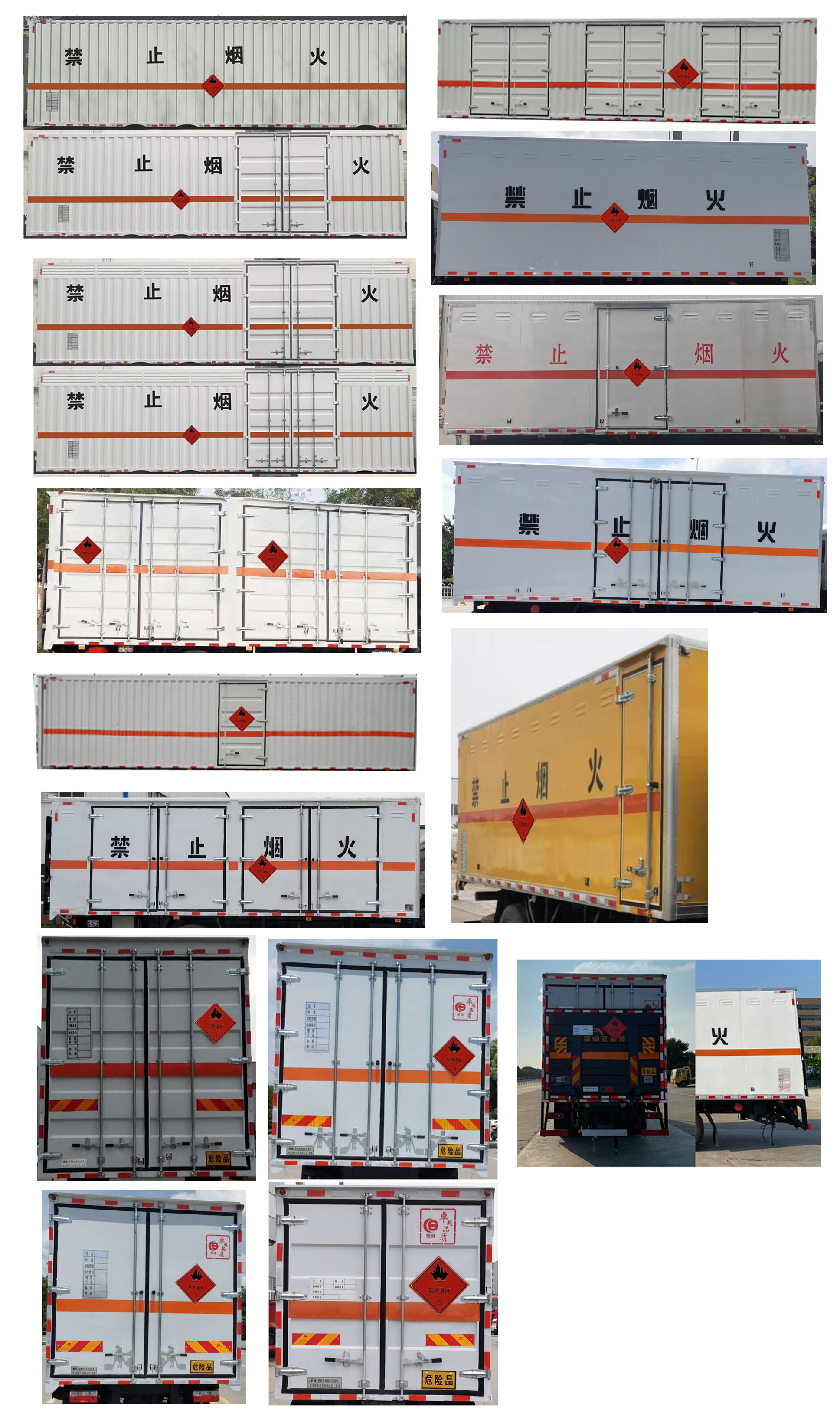 | 配置 | 1、該車適用于運輸危險品,運輸具有**容器(瓶)包裝的物品,運送危險物品類項號:3。廂體頂部封閉,不可開啟。2、側/后防護材料為Q235,側防護螺栓連接,后防護焊接,截面尺寸120×60mm,下邊緣離地高490mm。3、僅采用軸距(mm):4700,5000。隨底盤選裝駕駛室前面罩,選裝側窗玻璃,駕駛室頂部中間三個裝飾燈為選裝件,前霧燈為選裝件,駕駛室前臉擾流罩為選裝件。僅選用排氣管前置、限速裝置(限速80km/h)、前輪盤式制動及子午線輪胎的底盤,安裝帶有衛星定位功能的行駛記錄儀,EBS型號/生產廠家:EBS5/東科克諾爾商用車制動系統(十堰)有限公司。采用的發動機與油耗值(L/100Km)對應關系為: B6.2NS6B210/26.5,DDi50E190-60/23.9。4、廂體側面選裝開門型式及位置,選裝不帶側開門,選裝瓦楞板結構;廂體側面板選裝開百葉窗。選裝尾板,尾板收起狀態水平長度為290mm,尾板質量為550kg。選裝ETC。 | ||