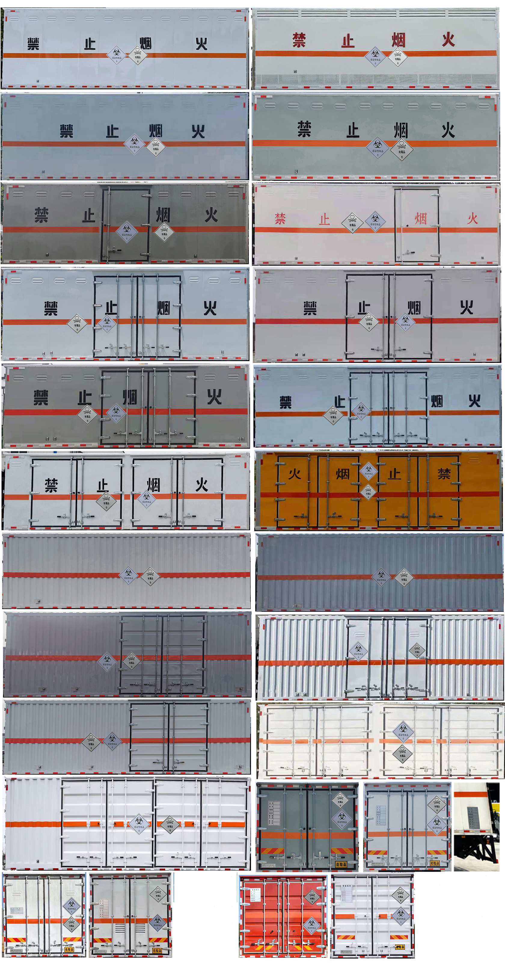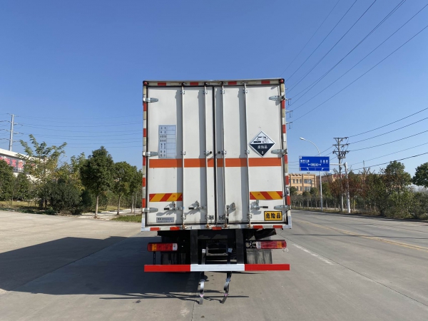 | 備注 | 該車為危險品運輸車,隨底盤選裝駕駛室,選裝后視鏡,選裝側開門型式及位置,選裝不開側門,選裝不同箱體外觀,選裝后部樣式,選裝后部尾燈架樣式,安裝限速裝置,限速80km/h,車廂頂部封閉且不可開啟;運輸獨立容器(瓶)包裝的貨物; | ||||||||||