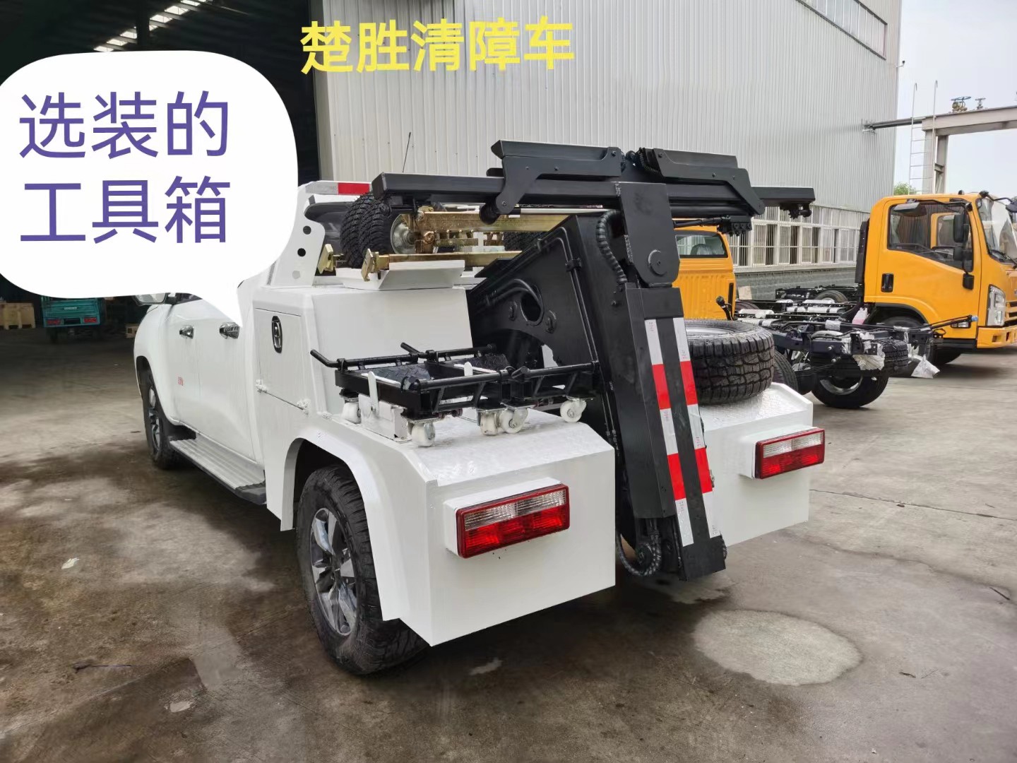 上裝標(biāo)配:最新一代專利產(chǎn)品,拖吊連體式后托臂(歐美最新一代產(chǎn)品),拖車(chē)更穩(wěn),不翹頭。所有動(dòng)作無(wú)線遙控操作,全自動(dòng)抱胎,3噸電動(dòng)液壓?jiǎn)卧瑯?biāo)配B型輔助小車(chē)一對(duì),標(biāo)配前配重,2條皮卡專用綁帶,緊繩專用彎鉤扳手,最新一代A型輪(高速小跑車(chē))一套。送空氣懸架一套。車(chē)架原廠加強(qiáng)加固。符合新法規(guī)要求。