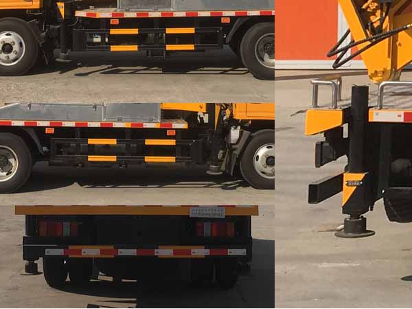 配置  ABS型號:APG3550500A;ABS生產企業:浙江亞太機電股份有限公司;選裝描述:隨底盤選裝黑色輪輞,門框黑色貼膜可選擇取消。選裝前臉、前部燈具;側后防護情況:側、后防護材料均采用Q235.側防護螺栓連接;后防護焊,接截面尺寸100×50mm,下邊緣離地高420mm;專用功能及裝置:該車用途為搶修電力、通訊、路燈等高空作業,主要裝置為升降平臺,作業臂;