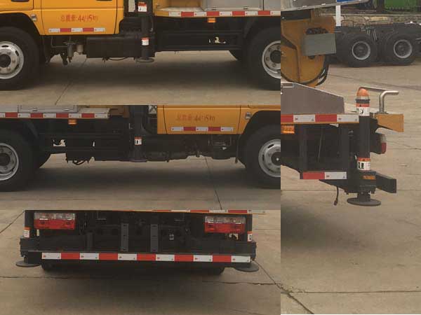 配置  該車用途為搶修電力、通訊、路燈等高空作業,主要裝置為升降平臺,作業臂。側、后防護材料均采用Q235。側防護螺栓連接;后防護焊接,接截面尺寸100×50mm,下邊緣離地高420mm。隨底盤選裝前面罩,前保險杠,前組合燈具。ABS型號/廠家:ABS/ASR-12V-4S/4M/襄陽東風隆誠機械有限責任公司。發動機型號:YCY24140-60,Q23-115E60,H20-120E60,ZD30D16-6N。