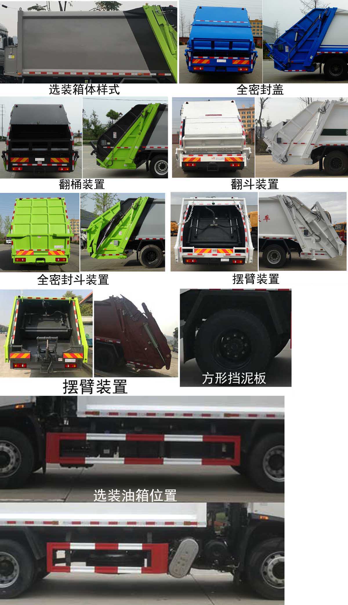 | 配置 | 1、該車主要專用裝置由箱體、壓縮系統(tǒng)組成,用于垃圾的收集與清運。該車可選裝方形或弧形箱體,選裝全密封蓋裝置,選裝方形擋泥板,選裝后部工作裝置,選裝側防護樣式。選裝工作裝置時外形長/前懸/軸距/后伸對應關系為(mm):①無上料裝置:8670/1400/4500/-;8700/1430/4500/-;8870/1400/4700/-;8900/1430/4700/-;②全密封斗裝置和擺臂裝置:8870/1400/4500/200;8900/1430/4500/200;9070/1400/4700/200;9100/1430/4700/200;③翻桶裝置和翻斗裝置:9070/1400/4500/400;9100/1430/4500/400;9270/1400/4700/400;9300/1430/4700/400。僅采用4500mm,4700mm軸距。2、側防護采用冷彎型鋼/Q235,螺栓連接;后防護由專用裝置替代,下邊緣離地高:500mm。3、隨底盤選裝高度不同的駕駛室;選裝前霧燈;選裝駕駛室頂部裝飾燈;選裝駕駛室前面罩;選裝前保險杠及前部燈具,駕駛室前臉擾流罩為選裝件;駕駛室臥鋪側窗選裝裝飾板;選裝油箱安裝位置,選裝踏步結構。安裝帶有衛(wèi)星定位功能的行駛記錄儀。ABS型號/生產(chǎn)廠家:3631010-C2000/東科克諾爾商用車制動系統(tǒng)(十堰)有限公司,ABS 8/東科克諾爾商用車制動系統(tǒng)(十堰)有限公司, 4460046450/威伯科汽車**系統(tǒng)(**)有限公司。采用的發(fā)動機與油耗值對應關系為(L/100Km):DDi50E190-60/23.9,D4.5NS6B190/24.4,D6.7NS6B230/23.7,B6.2NS6B210/23.8,B6.2NS6B230/23.8。 | ||
