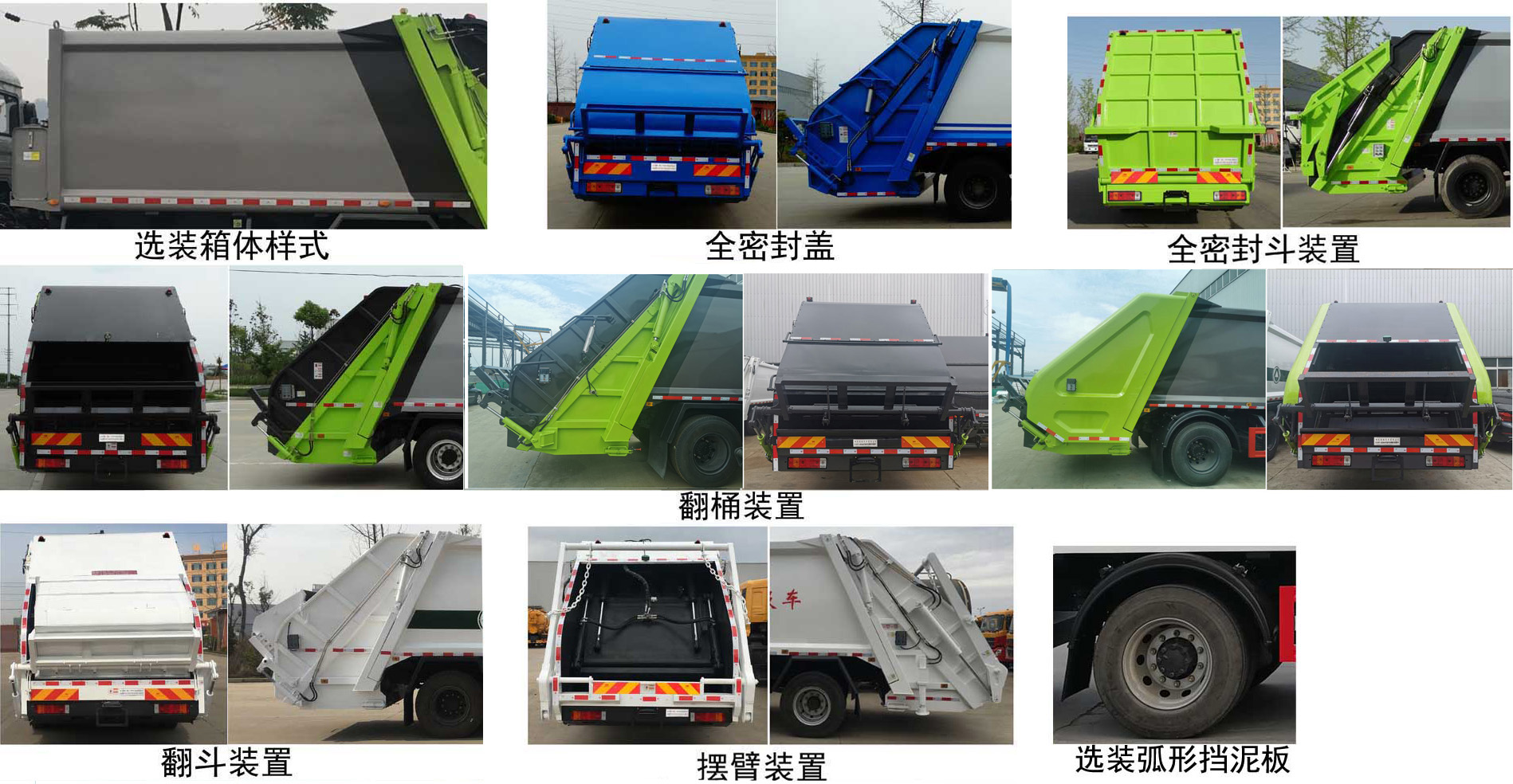 | 配置 | 1、該車主要專用裝置由箱體、壓縮系統(tǒng)組成,用于垃圾的收集與清運(yùn)。該車可選裝方形或弧形箱體,選裝全密封蓋裝置,選裝方形擋泥板。選裝后部工作裝置。選裝工作裝置時(shí)外形長(zhǎng)/后伸對(duì)應(yīng)關(guān)系為(mm):①無(wú)上料裝置:8680/-;②全密封斗裝置和擺臂裝置:8880/4500/200;③翻桶裝置和翻斗裝置:9080/400。僅采用4500mm軸距。2、側(cè)防護(hù)采用冷彎型鋼/Q235,螺栓連接;后防護(hù)由專用裝置替代,下邊緣離地高:500mm。3、隨底盤(pán)選裝前圍和燈具,選裝寬體保險(xiǎn)杠,腳踏板。安裝帶有衛(wèi)星定位功能的行駛記錄儀。ABS系統(tǒng)生產(chǎn)廠家:長(zhǎng)春瑞立科密汽車電子有限公司,型號(hào):CM4XL。采用的發(fā)動(dòng)機(jī)與油耗值對(duì)應(yīng)關(guān)系為(L/100Km):CA4DK1-22E6/25.6,CA4DK1-18E6/25.6,CA6DH1-24E6/26.92。 | ||